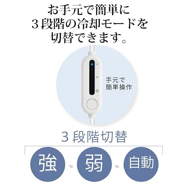 使いやすい手元スイッチで風量の切り替えカンタン。3段階(強・弱・自動)の冷却モード。