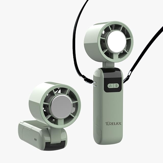 1台多役・ネックストラップ付き首掛けファン①ファン は90度まで折りたたむことができ、直接折りたたんで卓上扇風機 に変身できます。②スタンドも引き出してテーブルファンとして変身させることができます。③ネックストラップがついており、首掛け扇風機 として簡単に持ち運べます。