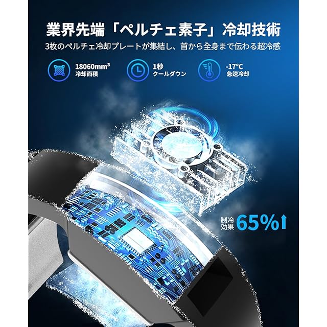 【ペルチェ素子冷却・最大-17℃冷やす】最先端技術ペルチェ素子を採用し、冷却効率がUPし、さらなる3つ冷却プレート搭載で首元を冷やして素早くクールダウン!。瞬間極涼温度が最大マイナス-17℃。真夏でもひんやり冷たい!これ首掛けエアコン1台で夏のアツさを吹っ飛ばす夏らしい爽やかなプレゼントを大切な人や自分に贈りましょう!