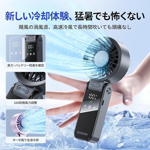 【2025年モデル・夏の涼風】ハンディファン 手持ち扇風機 強力送風 冷却プレート -20℃瞬間冷却 携帯扇風機 12枚羽根 1~100段階無段階風量調節 4000mAh 充電式 ハンディ扇風機 小型扇風機 USB扇風機 Type-C 手持ちクリップ 液晶画面 残量表示 軽量 卓上 扇風機 熱中症対策 暑さ対策 首掛け ストラップ付き(日本語説明書)