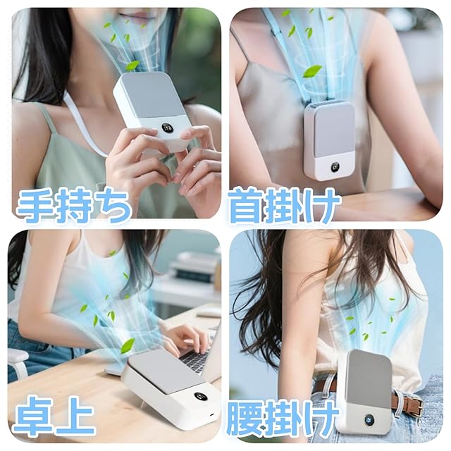 Enfsdtyec 腰掛け扇風機 携帯扇風機 ベルトファン 羽なし 腰掛け/首掛け/卓上/手持ち/ミニ 2000mAh大容量 ネックファン LEDディスプレイ付き 静音 小型 3段階風量調整 軽量
