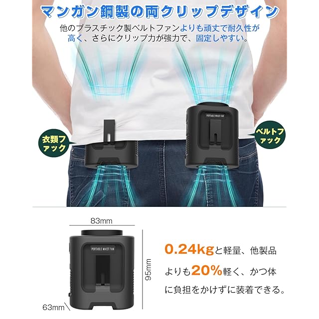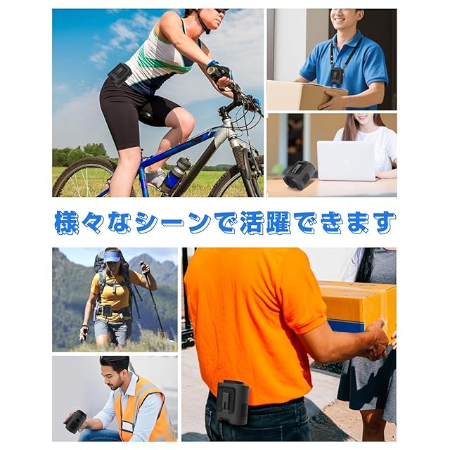 【アウトドア作業に最適】一台4WAYの携帯扇風機:腰掛け、手持ち、首掛け、卓上扇風機として使えます。マンガン鋼製の両クリップ設計で、頑丈で耐久性が高く、クリップ力が強力で、ベルトにしっかり固定することができます。両手をふさがずに、手を自由にしておきたい工事現場、農作業、配達作業、工場内、倉庫、スポーツ観戦、釣り、お祭り、アウトドア活動など様々なシーンで熱中症対策に最適です。