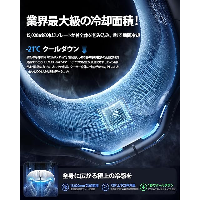 【2025最強進化 AICE LITEプラス】RANVOO ネッククーラー 冷却プレート 首掛け扇風機 全周ペルチェ素子 720°立体冷風再進化 上下強風 アプリ機能 6000mAh大容量バッテリー AI電力管理 急速充電 冬夏兼用 携帯扇風機 ネックファン 首掛けクーラー 万博 暑さ対策グッズ 熱中症対策 プレゼント グレシャーブルー