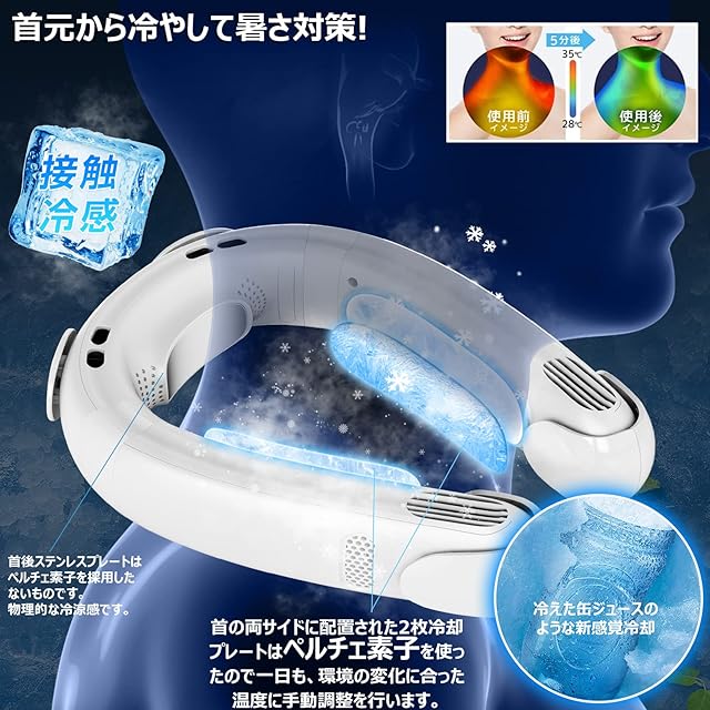 首掛けクーラー扇風機【2025年夏新型ネッククーラー】瞬間冷感 ネックファン USB扇風 6000mAh大容量バッテリー内蔵 冷却プレート半導体クーラー 冷却2段階 風量3段階 長時間稼働 男女問わず 軽量 静音 省エネ PSE認証済 ネッククーラーファン スポーツ 熱中症対策/自宅/スポーツ観戦/屋外作業/旅行/釣り/母の日 父の日 誕生日 プレゼント (ホワイト)
