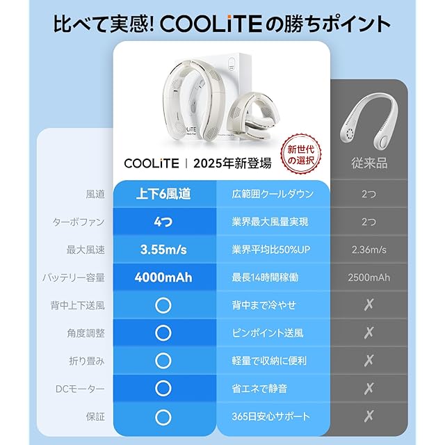 【業界最強!新世代の選択!】6年連続業界売上NO.1を獲得したTORRASの新作ーネッククーラー『COOLiTE:クール×ライト』が新登場!「最大風量×最軽量」を両立した日常使いの決定版。涼しさと快適さにこだわり、シンプルながらも強力!高コスパな首掛け扇風機。ネックファン初心者におすすめです。アウトドア、屋外作業、通勤・通学...蒸し暑い夏の日でも涼風が自然にまとう新感覚。首&顔全体&背中を一気に冷やせ、熱中症対策グッズとして大活躍!暑さが増している日本の夏でも、身も心も軽く、涼しく快適!