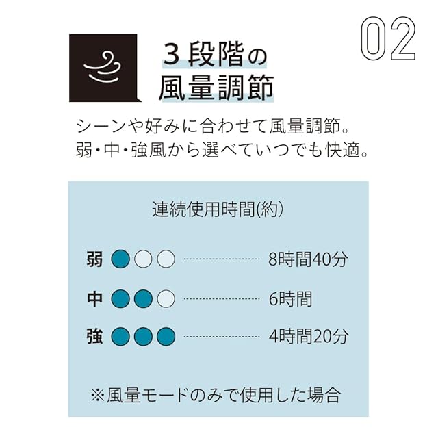 3モードをボタン一つで風量を調整できます。