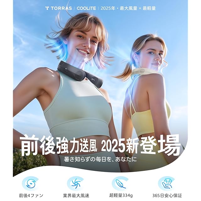 【業界最強風量!新世代の選択!】6年連続業界売上NO.1を獲得したTORRASの新作ー首掛け扇風機『COOLiTE:クール×ライト』が新登場!「最大風量×最軽量」を両立した日常使いの決定版。涼しさと快適さにこだわり、シンプルながらも強力!高コスパなネックファン。ネッククーラー初心者におすすめです。アウトドア、屋外作業、通勤・通学...蒸し暑い夏の日でも涼風が自然にまとう新感覚。首&顔全体&背中を一気に冷やせ、熱中症対策グッズとして大活躍!暑さが増している日本の夏でも、身も心も軽く、涼しく快適!