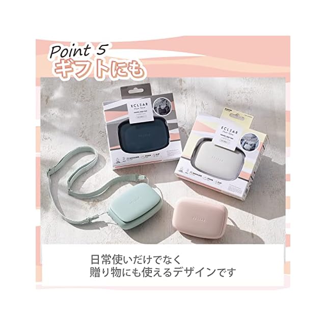 クリップ機能を搭載しており、ベルトやズボンにかけることでTシャツなどの内側に風を送り込むことが可能です。