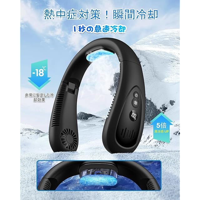 【2025世界的なヒット ネッククーラー 】首掛け扇風機ネックファン携帯扇風機 瞬間冷却5000mAh大容量 Type-C急速充電20時間連続使用羽なし風量3段階調節 LEDディスプレイマスク蒸れ対策グッズ 持ち運びやすい 折りたたみ式/作業/旅行/スポーツ/通勤/家事/最高のプレゼント