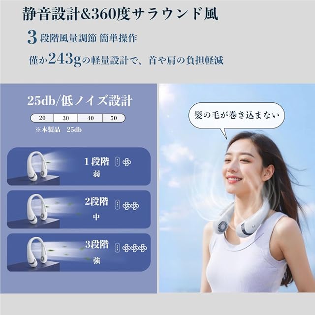 ✅【3段階風量調節】3段階風量調節可能で、利用シーンに合わせて調節し、どこでも快適に過ごせます。