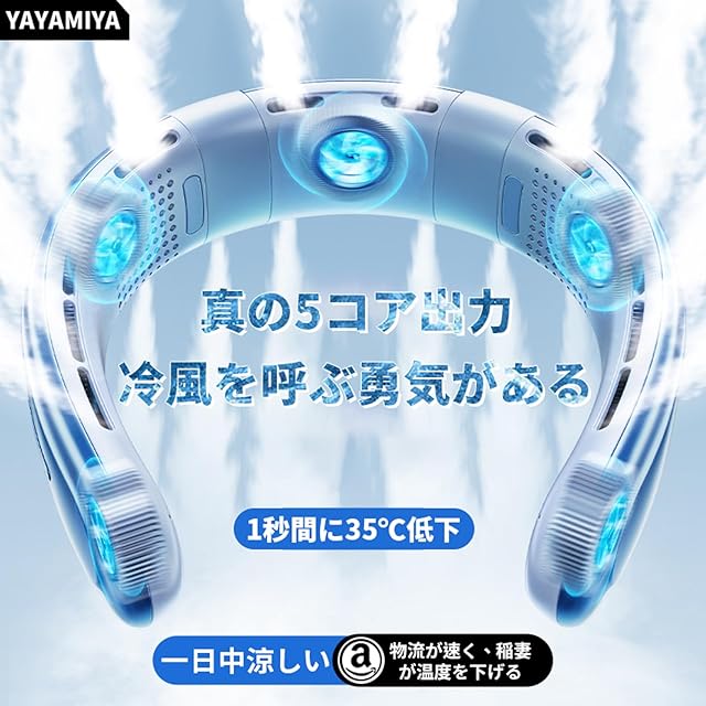 【初の革新五核風芯・全世界注目】YAYAMIYA 首掛け扇風機 【2023・10000mAh 持続バッテリー 】5コア10倍冷風 上下28風道 軽量 低騒音 両親や友人への熱中症対策プレゼント 急速充電 携帯扇風機 ハイキング/キャンプ/山登り/旅行/通勤 首掛けクーラー (ホワイト氷河)