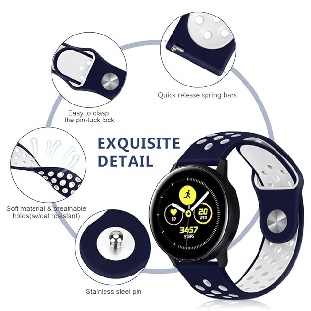 [Runostrich] 22mm時計バンド 柔らかく多空気穴通気性のシリコン スポーツ バンド 取付幅22mm のスマートウォッチと伝統的な腕時計交換用バンド (20mm, 青と白)