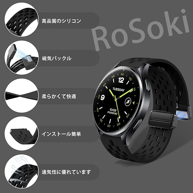 <b>RoSoki 22MM バンド</b><br> <br> 幅:22MM<br> 素材:シリコン<br> 特徴:<br> シリコンで、肌に優しく柔軟性に富んでいます。<br> 撥水処理が施されており、汗や水に強く、清潔な状態を保ちます。<br> 肌に優しく、アレルギーを引き起こすことがなく、柔軟性に富んでいます。<br> 腕にフィットし、ストレスフリーな装着感を実現しています。<br> スポーツ時の汗や水による不快感や、臭いの発生を抑えることができます。<br> マグネット付きバックルを採用しているため、ストラップを素早く着脱することができます。<br> <br> <b>22mm時計バンドの対応機種</b><br><br>コンパチブル Xiaomi Redmi Watch 5 Active / Xiaomi Redmi Watch 5 Lite/Xiaomi Watch S4 Sport /Xiaomi Watch 2/Xiaomi Watch S3 / Xiaomi Watch S1 Pro / Xiaomi Mi Watch S1 Active / Xiaomi Mi Watch S1 / Xiaomi Watch 2 Pro / Xiaomi Mi Watch.<br><br> コンパチブルHuawei Watch GT 5 Pro 46mm / Huawei Watch GT 5 46mm / Huawei Watch GT4 46mm / Huawei Watch 4 46mm /Huawei Watch 4 Pro 48mm/HUAWEI WATCH Ultimate / Huawei Watch Buds / Huawei Watch GT 3 46mm / Huawei Watch GT Runner / Huawei Watch 3 / Huawei Watch 3 Pro / Huawei Watch GT 2 46mm / Huawei Watch GT 2e / Huawei Watch GT 2 Pro / Huawei Watch GT 2 Pro ECG / Huawei Watch 2 Classic / Huawei Watch GT 42mm / Huawei Watch GT 46mm / Huawei Watch GT Classic / Huawei Watch GT Sport Active<br> <br>コンパチブル Garmin Venu 3 / Garmin Forerunner 265 / Garmin Forerunner 255 / Garmin Forerunner 255 Music / Garmin vivoactive 4 / Garmin Venu 2 / Garmin Active<br><br>コンパチブル Samsung Galaxy Watch 3 45mm /Galaxy Watch 46mm /Samsung Gear S/Gear S3 Frontier /Gear S3 Classic /Gear 2 R380/ Gear 2 Neo R381 /Gear 2 Live R382.<br><br><b>カスタマー Q&A</b><br> <br> 1 、質問:この商品は何機種に対応しますか?<br> 答え:これバンドは22mm 時計対応します。(適切な時計モデルのバンドを正確に購入してください。)<br> <br> 2、質問:この商品はパッケージにサポートツールはありますか?<br> 答え:マグネット付きバックルを採用しており、簡単に装着・着脱ができます。ツールを必要とせずに数秒でバンドを変更できます。<br> <br> 3、質問:破損、欠陥、またはひびの入った製品を受け取った場合はどうすればいいですか?<br> 答え:受け取った製品欠陥がある場合、または傷がある場合アマゾンメッセージングシステムを通じてお問い合わせください。24時間以内に返信し、早めに解決いたします。<br> <br> 4、質問:間違った色とサイズの商品を受け取った場合はどうすればいいですか?<br> 答え:アマゾンメッセージングシステムを通じてお問い合わせください、弊社から無料で新商品を送ります。<br>