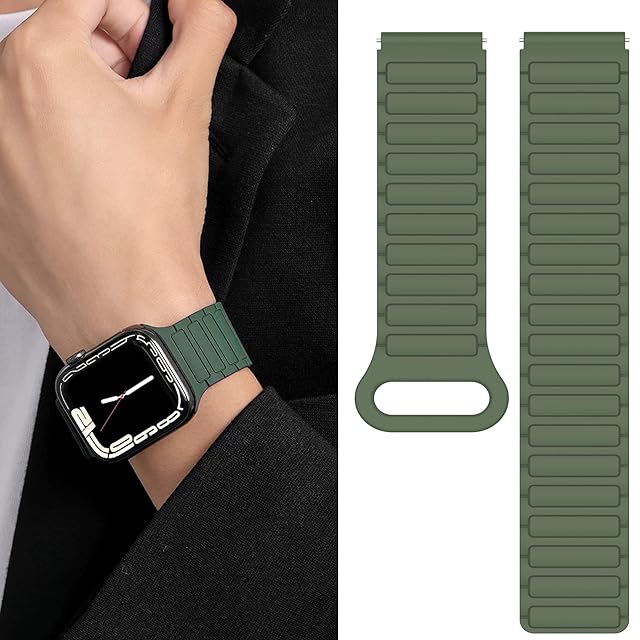 [Lamshaw] FOSMET QS40マグネットバンド, シリコン 磁石 22mm交換バンド 長さ調節超簡単 磁気ベルト柔らか 軽量 おしゃれストラップ FOSMET QS40 1.43インチスマートウォッチ用 (グリーン)