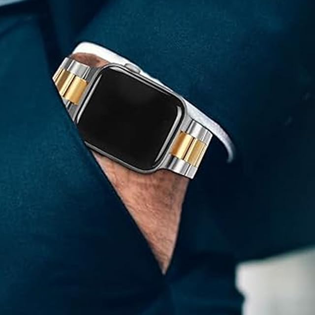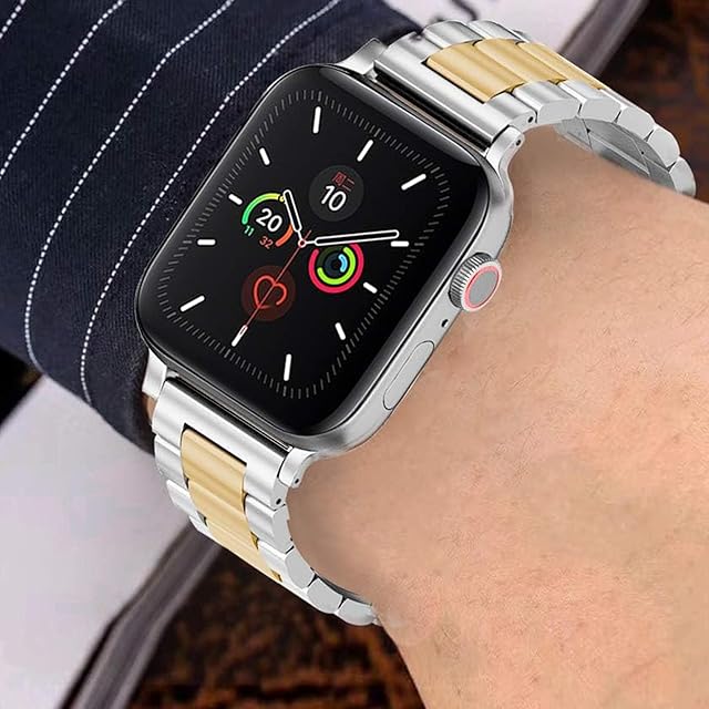 Lamsaw for RUIMEN D1スマートウォッチ 交換バンド, ステンレス製 メタル ベルト 金属交換バンド 時計ストラップ 長さ調整器具付き RUIMEN D1スマートウォッチ に対応 (シルバー&ゴールド)