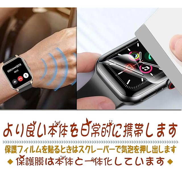 【自動修復】:新しいナノスローバック弾融合技術を採用し、自己復元素材の使用して高い伸縮性と弾力性を誇り、日常のスクラッチから画面を効果的に保護できます。24時間以内に細かい傷を修復し、時計の画面を効果的に保護し、微小な傷、自動修復することができる。