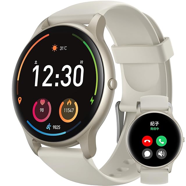 ⌚【1.32インチ HDディスプレイ・360*360高解像度】円型なスマートウォッチはシンプルで洗練された超薄型デザイン、男女対応。360*360ピクセルの高解像度、画面占有率96%と最大級となっています。従来ウォッチと比べて、画面の文字や画像などをもっと鮮明に表示されています。 Bluetooth 5.2技術と最新チップを搭載されて、これまでにない抜群の接続速度と高音性を実現しました。伸縮性のあるリキッドシリコンバンド素材を採用されて、サラサラとした手触りの使いやすいスポーツバンド、つけっぱなしにしても存在を忘れるほど、着装の軽量性を実現しました。替えバンドサイズ:22MM。