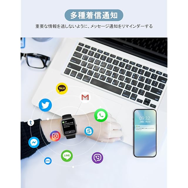【Bluetooth通話・メッセージ通知・音声アシスタント】Bluetooth 5.2を搭載し、接続の安定性が大幅に向上し、データ転送が高速化されます。スピーカーとマイクを内蔵し、スマホとの接続後は、ウォッチで電話を受けたり、掛けたりすることができます。スマホの電話帳と同期し、通話記録も保存できます。また、LINE、SMS、Twitter、Facebook、Instagram、Gmailなどのアプリからの通知を受け取ることができます。 通知を受信すると時計が振動し、メッセージを見逃しません。パスコードロックも付いているので、誰かにメッセージを見られる心配もありません。 また、音声アシスタントは、スマートウォッチ上でタップすると起動します。Ganriverは、生活や仕事の効率を向上させます。