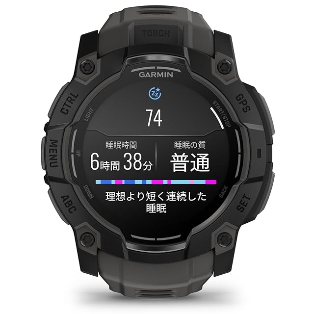 【金属強化】ベゼル一部に金属を使用し、強度を高め、高級感のあるデザイン。【タッチ決済】便利なSuica機能を搭載。【稼働時間】約24日間のロングバッテリー【ディスプレイ】シリーズ初のAMOLEDディスプレイ。1.3インチの大画面で、Instinctらしいサブ液晶をイメージしたデザインのウォッチフェイスも搭載。