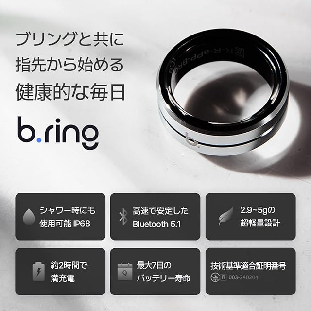 【毎日の健康をサポート】b.ring(ブリング)は着けているだけで生体情報を分析し健康をサポートするスマートリングです。日常生活に最適な着け心地とスタイリッシュなデザインが特徴です。