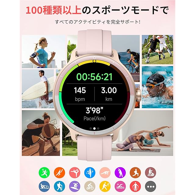 【100以上の運動モード&自動検知機能】このスマートウォッチは、100種類以上の運動モードを内蔵しており、ランニング、サイクリング、水泳など、あらゆるスポーツ活動に対応しています。さらに、運動の自動検知機能が搭載されており、ユーザーが運動を開始すると自動的に検知し、データを記録します。これにより、運動の習慣化が容易になり、健康管理がより効果的になります。運動の成果をリアルタイムで確認できるため、モチベーションの維持にも役立ちます。
