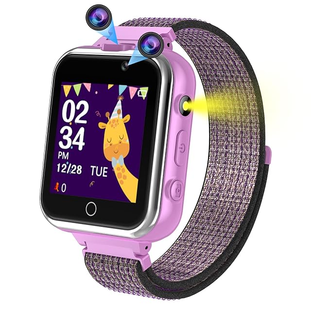 AYATAHA® キッズ 腕時計 スマートウォッチ 子供 児童知能時計- 知能時計、デュアルカメラ ゲーム 音楽 MP3 プレーヤー付きハイビジョン自撮りカメラ 懐中電灯 計算機 歩数計 目覚まし時計 タイマー、女の子 男の子 smart watch for kids おもちゃ usb充電式 知育玩具 4-12歳学生12/24時間適用 クリスマス 誕生日 プレゼント 小学生 ギフト (パープル)