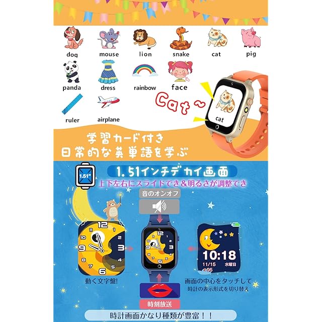 キッズ 腕時計 スマートウォッチ 知育おもちゃ 男の子 女の子 kids watch 1.5インチ 多機能 自撮り カメラ 26ミニゲーム付き 英単語学習 万歩計 目覚まし時計 音楽 オーディオブック 入園入学祝い クリスマス 誕生日 林間学校 3〜14歳 小学生 子供向け 低学年 中学年 USB充電式 長持ちバッテリー 説明書が付き 人気 プレゼント (オレンジ)