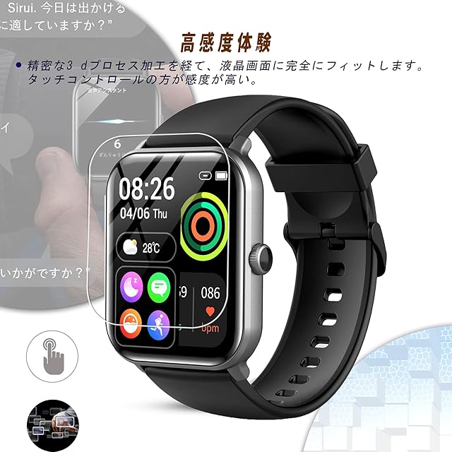 【対応機種】<br><br/> 対応 スマートウォッチ 1.9インチ/2.0インチ フィルム。スマートウォッチのサイズに注意して商品を購入していただきます。<br><br/> 【敏感な接触】:保護フィルムは超薄型TPU柔軟素材で、接触がよく、高感度で、タッチが壊れない、実機タッチを復元し、快適に使用できる。<br><br/> 【高透過率】:透過率は99%以上ため,超反射処理で、強い光による反射を抑制し、画面を見やすくします。クリアな画質で快適な視聴体験を提供します。<br><br/> 【汚れ指紋防止】フィルムの表面に撥水撥油のコーティングが施しているため、汚れや指紋が付きにくいです。日常のメンテナンスも簡単、汚れたついた場合は布で簡単に拭き取れます。手触りは良く、画面上の操作もスムーズ行えます。<br><br/> 【曲面対応】 フィルムはソフトで、液晶画面にぴったりフィットし、カーブしたエッジも完璧にカバーでき、液晶の角割れも防ぎます。貼り付けがとても簡単で剥がれにくいだけではなく、スクリーンの感度に影響を及ぼしません。<br><br/> 【品質保証】 商品についてご不明な点がございましたら、お気軽にお問い合わせください。万が一商品に不具合がございましたら、必ず弊社まで直接ご連絡ください。問題の内容やお客様のご要望に応じて、無料で交換、返品、返金をさせていただきます。お客様が満足するまでタイムリーに対応します。