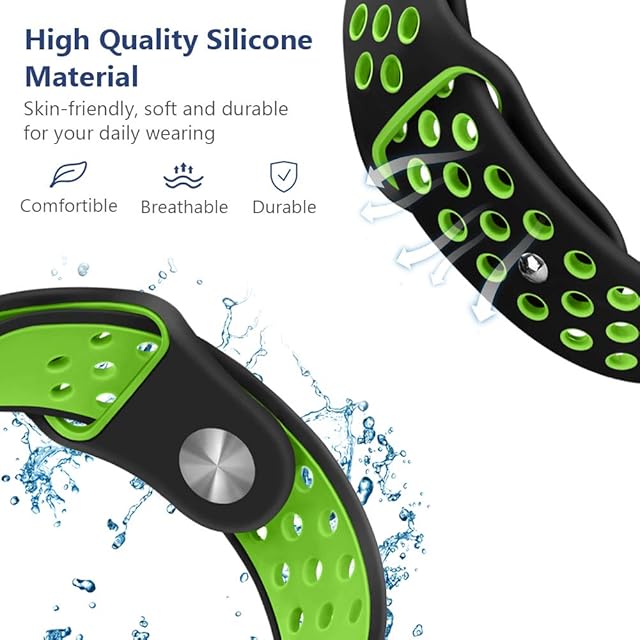 [Runostrich] 20mm時計バンド 柔らかく多空気穴通気性のシリコン スポーツ バンド 取付幅20mm のスマートウォッチと伝統的な腕時計交換用バンド (20mm, 黒と緑)