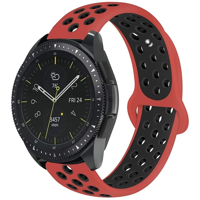 [Runostrich] 20mm時計バンド 柔らかく多空気穴通気性のシリコン スポーツ バンド 取付幅20mm のスマートウォッチと伝統的な腕時計交換用バンド (20mm, 赤黒)