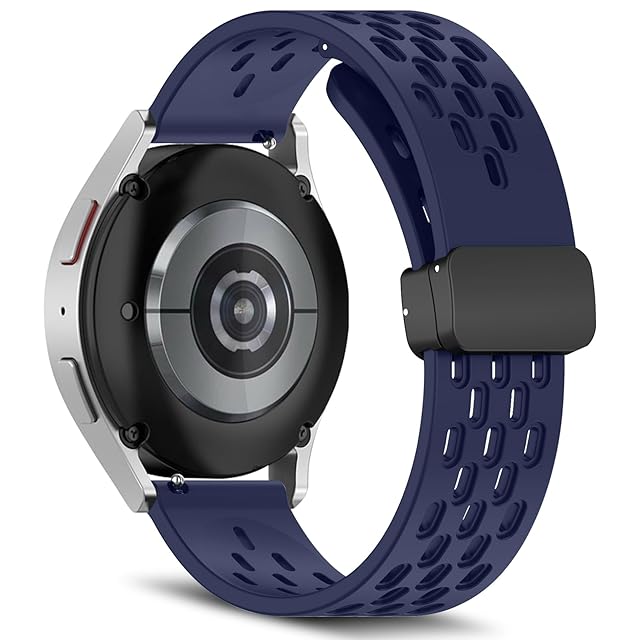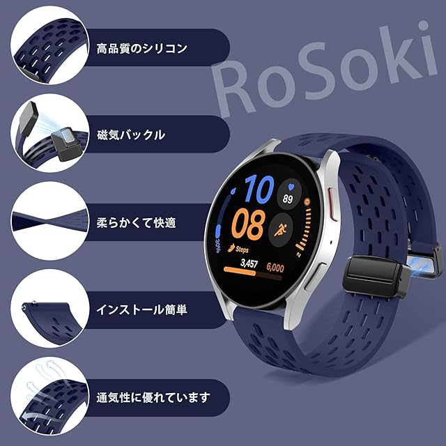 [RoSoki] 20MM バンド Samsung Galaxy Watch FE 40mm / Samsung Galaxy Watch 7/6/5/4 40mm 44mm / Samsung Galaxy Watch 6 Classic 43mm 47mm対応 バンド シリコン製 マグネット付き スポーツバンド ストラップ 替えバンド 交換ベルト 柔らかい バンド 用 ダークブルー