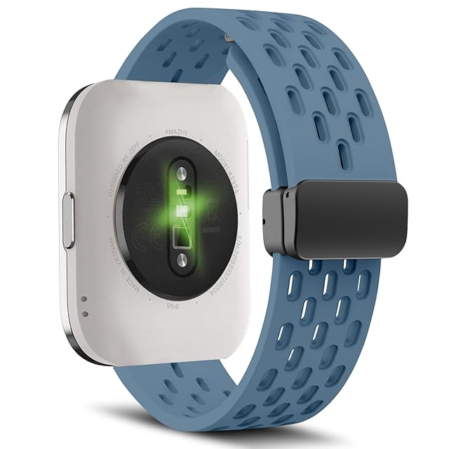 [RoSoki] 22MM バンド Amazfit Bip 6/Bip 5/5 Unity/Amazfit GTR 47mm /GTR 4 /GTR 3 Pro 対応 バンド シリコン製 マグネット付き スポーツ替えストラップ 交換ベルト 柔らかい 調整簡単 男女兼用 ブルー