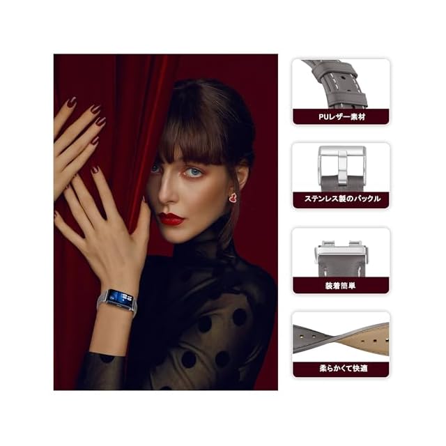 [LanQii] レザーバンド For HUAWEI Band 10 / HUAWEI Band 9 / HUAWEI Band 8 対応 バンド PUレザー素材 ベルト ソフト 柔軟性 ビジネス風 交換ベルト レディース&メンズ 革製ストラップ