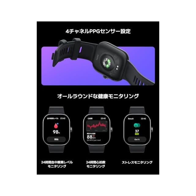 【精度が向上した24時間体制の健康管理機能】24時間体制で心拍数、血中酸素レベル、睡眠などをモニタリングし、毎日の健康データを詳細に表示します。StravaやApple Health、今回新たに対応するGoogle Fitとのデータ同期※も簡単に行えます。デュアルセンサーを搭載し、4チャネルにアップグレードされたPPGセンサーにより、モニタリングの精度がさらに向上しました。