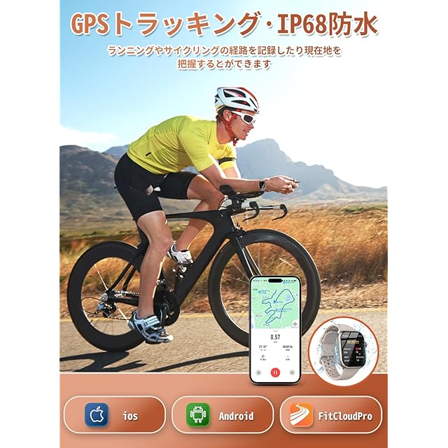 【日常生活のデータ記録!】100種類以上の運動モードを内蔵しており、ウォーキング、ランニング、サイクリングなど、ほぼすべてのエクササイズに対応します。さらに、FitCloudProアプリと連携することで、運動中にスマートウォッチからアプリを通じて正確なGPS位置情報を取得し、リアルタイムで移動ルートや距離を記録できます。これにより、スポーツの魅力を最大限に引き出します。「※GPS機能は内蔵されていませんが、FitCloudProアプリとの連携によりデータや軌跡マップを表示可能です。」また、新たに運動の自動検知機能を搭載しており、運動中であることを感知すると、ウォッチがリマインド通知を行います。通知をタップするだけで、簡単に運動を開始できます。さらに、IP68防水規格に対応しているため、水泳や雨天時でも安心して使用できます。ご注意:高温の環境である温泉、サウナ、海水、お風呂などで使用しないでください。また、アプリと接続後、スマートウォッチを日本語、英語、フランス語など14言語に設定可能です。