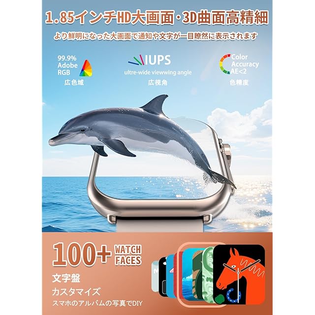 【ユニークな3DキューブUIデザイン!】スマートウォッチは1.85インチ大画面タッチパネルを採用し、画質がより鮮明にHD大画面で、通知や文字を一目瞭然!驚くべきは、ユニークな 3D キューブ UI デザインにより、スマートウォッチメニューのあらゆる側面が独特の魅力で輝いていることです。シンプルで直感的な操作インターフェースにより、さまざまな機能を簡単に切り替えて、スムーズなユーザーエクスペリエンスを楽しむことができます。または、画面の文字盤をお好みでカスタマイズすることができ、好きな写真をスマートウォッチのデスクトップに変換可能です。アプリ内は100種類の文字盤を自由にダウンロード可能です。個性豊かでスタイリッシュなスマートウォッチを、いつでも手にすることができます。日頃仕事を頑張っている自分へのご褒美、クリスマス、新年、誕生日、記念日、母の日、敬老の日などに一番適用するプレゼント!