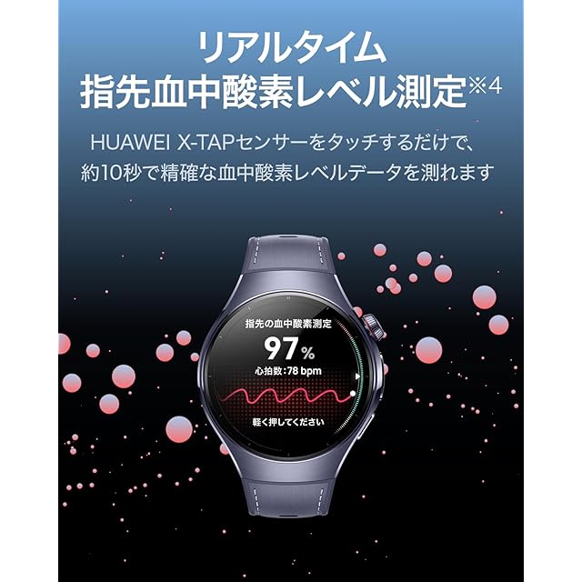 【リアルタイムの指先血中酸素レベル測定】:リアルタイムの指先血中酸素レベル測定をサポート。HUAWEI X-TAPを約10秒タップするだけで、精確な血中酸素レベルの測定値が得られます。