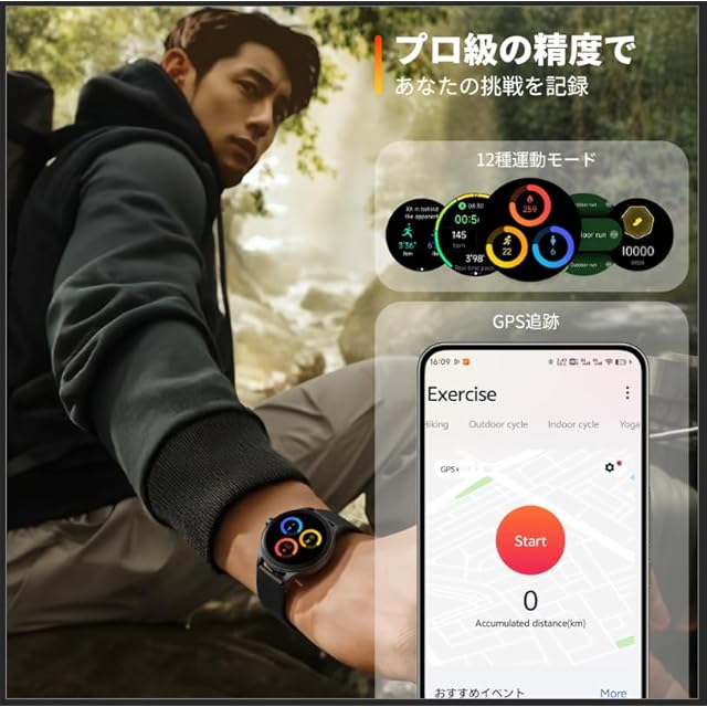 【100種運動記録&IP68防水でアクティブ生活を支援】 ランニング/水泳/ヨガなど100種類の運動モードを内蔵(アプリで随時切り替え可能)。歩数・距離・消費カロリーを自動計測し、目標達成度を分単位で可視化。IP68防水規格準拠で、発汗時の使用や雨天でのジョギングも問題ありません。運動後はアプリで詳細な分析レポートを生成します。