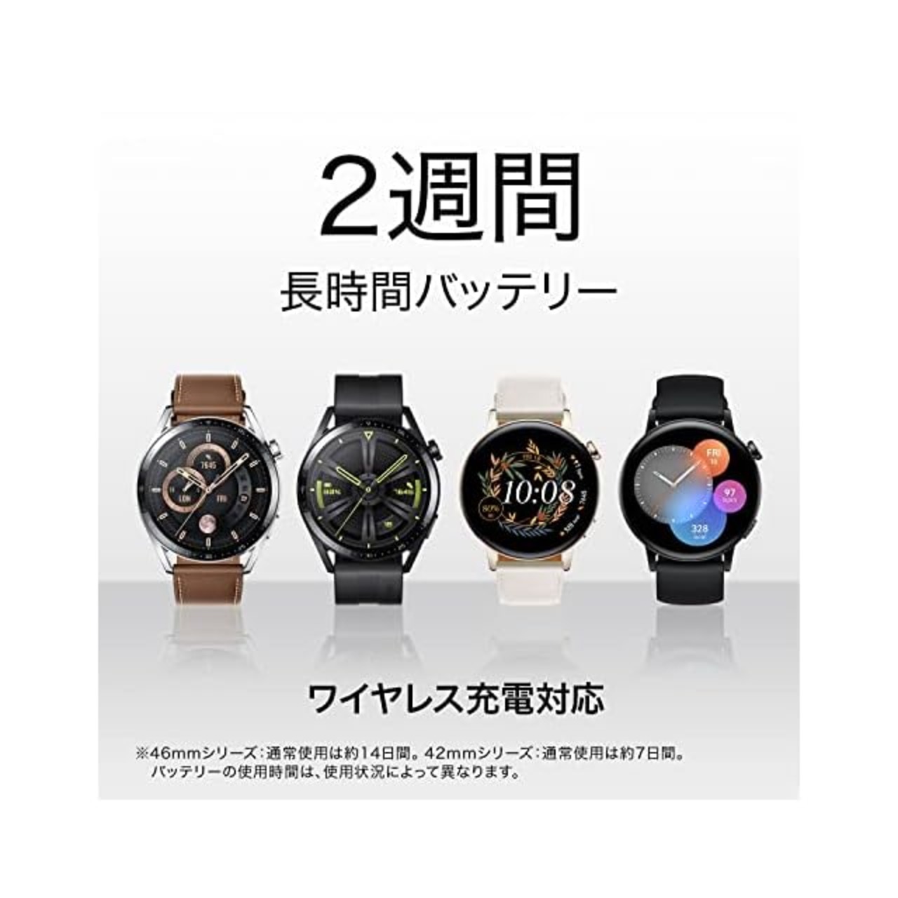 【ロングバッテリー、ワイヤレス充電対応】ワイヤレス充電対応。「HUAWEI WATCH GT 3 42 mm」は最大7日間バッテリーが持続するので、ワークアウトを記録し、健康管理を可視化することに役立ちます。