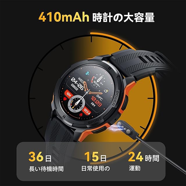 OUKITELスマートウォッチ防水防塵耐衝撃smart watch、1.43インチAMOLED高精細大画面、410mAhの大容量長持ちバッテリー15日連続使用、着信通知 Line/メッセージ通知、Bluetooth5.2通話、100+種類運動モード、遠隔撮影、音楽再生制御、音声アシスタント、活動量計、天気予報、明るさ調整、文字盤自由設定、iPhone/Android対応