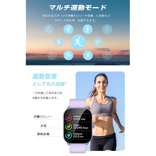 ⌚【多機能】スマートウォッチは腕時計としてだけでなく、歩数や心拍数の計測なども可能です。健康状態や運動強度を可視化できるため、生活習慣の改善やトレーニングの効率化に役立ちます。アプリで歩数、カロリー、運動軌跡などデータが一目瞭然です。さらに、スマートウォッチ本体にランニングやサイクリングなど、マルチ運動モードが搭載、より自分の運動習慣に合わせて、記録・管理してくれます。