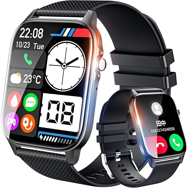 【Bluetooth5.3&高音質通話機能】この スマートウォッチが最新のBluetooth5.3に対応し、より安定した接続と低消費電力を実現。内蔵マイクとスピーカーで、手元のスマートウォッチから直接通話可能。LINE・SMS・Twitter・Facebookなどの着信通知にも対応し、重要なメッセージを見逃しません。