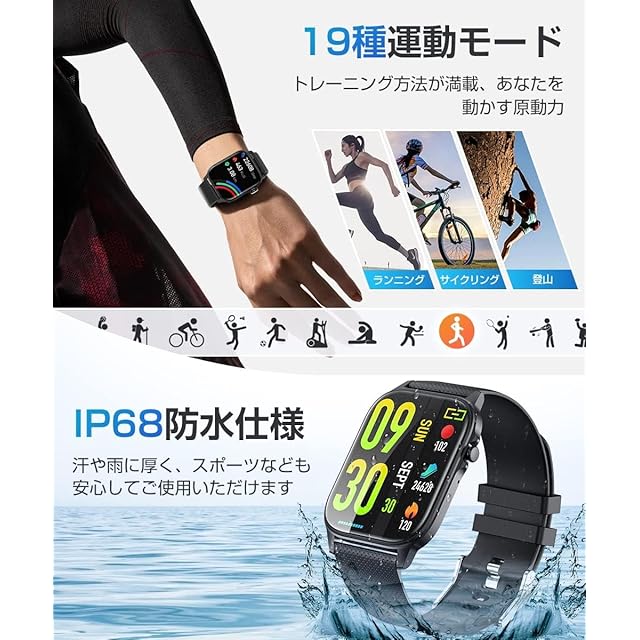 【19種類運動モード&活動量計】 スポーツウォッチとしてウォーキング・ランニング・ヨガ・サイクリングなど、19種類の運動モードを搭載。心拍数、歩数、距離、カロリー消費などのデータをリアルタイムで記録します。