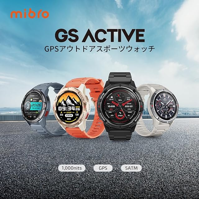 Mibro GS Active スマートウォッチ 1000nitの高輝度AMOLEDディスプレイ GPS全地球測位システム 10軸運動センサー SeekBeats™運動アルゴリズム 24時間健康管理 心拍数 睡眠 ストレス 150種類スポーツモード Line通知 アプリ通知 5ATM防水 日本語対応 1.3インチ ー iPhone対応 アンドロイド対応 腕時計 【替えバンド付き】 (グレー)