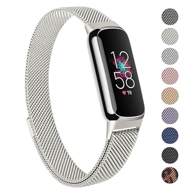 バンド コンパチブル Fitbit Luxe バンド 交換ベルト, ステンレス 交換ベルト 長さ調節 男女兼用 マグネット 留め金 メッシュ 通気 (スターライト)