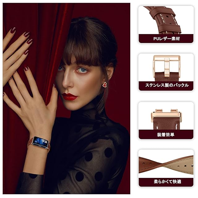 [LanQii] レザーバンド For HUAWEI Band 10 / HUAWEI Band 9 / HUAWEI Band 8 対応 バンド PUレザー素材 ベルト ソフト 柔軟性 ビジネス風 交換ベルト レディース&メンズ 革製ストラップ