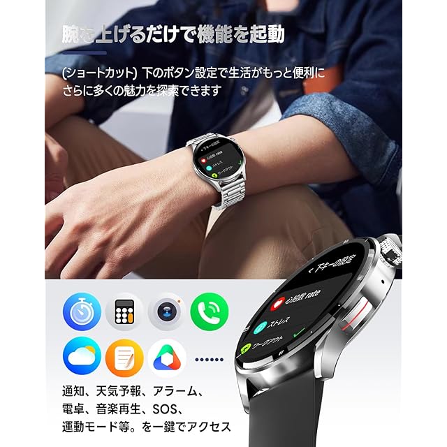 【Bluetooth通話&メッセージ通知機能搭載、大容量バッテリーで安心】2025年の革新的なスマートウォッチ 丸型 メンズは、腕を上げるだけで、LINE、Twitter、Facebookなどのメッセージを読み取ったり、ハンズフリー通話(電話の応答・拒否)が可能です。さらに、長時間バッテリーが特徴で、ワークアウト、Bluetooth通話、通信などの機能を簡単に使用できます。約30分の急速充電で最大1日分の電力が供給され、わずか約2時間のフル充電で8-10日間の使用時間、2-3日間の常時表示、21日間の待機時間を提供します。休憩時に充電するだけで、どんな状況でも動作します。