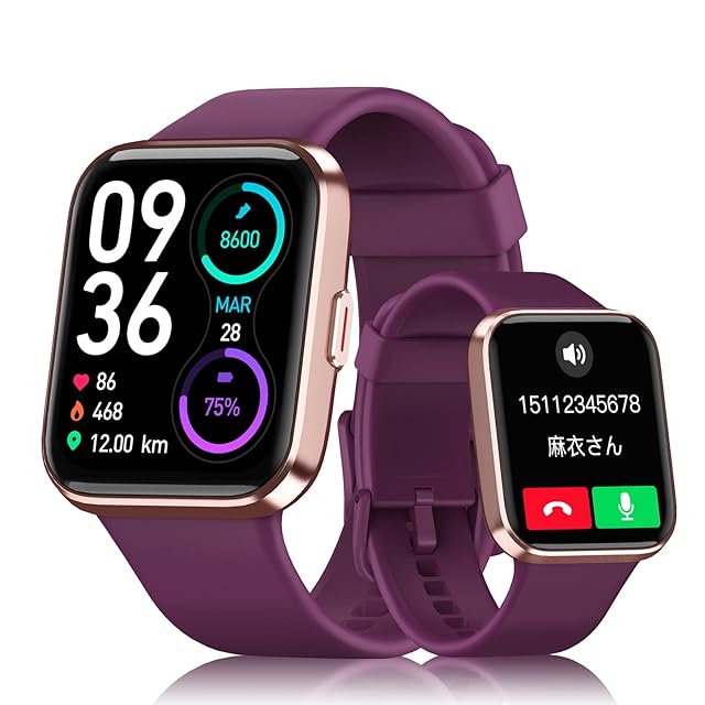 aeac スマートウォッチ iphone対応 アンドロイド対応,通話機能付き Alexa搭載 SMSメッセージ通知 IP68防水 睡眠トラッカー 100+種類運動モード 歩数 カロリー消費記録,メンズウォッチ 1.8インチHDタッチパネル プレゼント smart watch (パープル, 1.8)