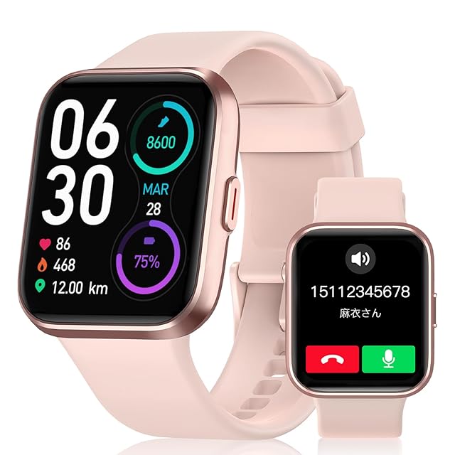 aeac スマートウォッチ iphone対応 アンドロイド対応,通話機能付き Alexa搭載 SMSメッセージ通知 IP68防水 睡眠トラッカー 100+種類運動モード 歩数 カロリー消費記録,メンズウォッチ 1.8インチHDタッチパネル プレゼント smart watch (ピンク, 1.8)