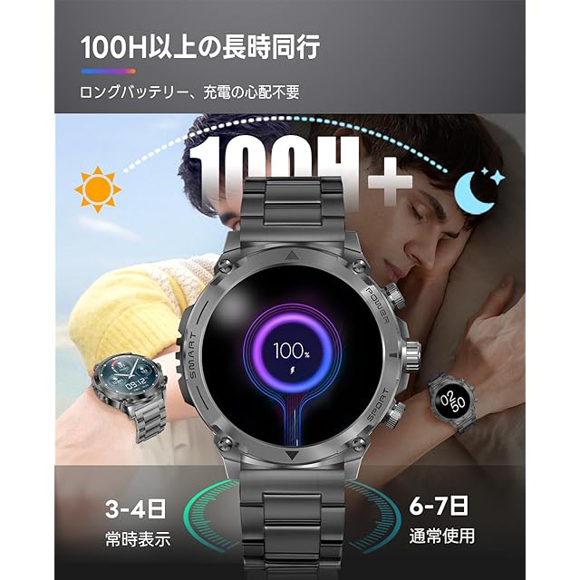 【驚きのロングバッテリーと日常生活の便利な相棒と12ヶ月の保証期間付き】 FOSMET smart watch はより省電力のBluetooth 5.3チップを活用したことだけでなく、AMOLEDスクリーンは画面表示や切り替えの際の消費電力を最小限に留めることができますので、充電の手間が最小限にします。1回のフル充電で5-7日間の持続利用(常時点灯3日間 / バッテリー節約モード:30日間)が可能です。アラーム、電卓、カメラ制御、音楽制御など実用な日常生活に役立つ機能が全開でもご安心して利用してください。さらに、FOSMET製品には購入日から12ヶ月の保証が付き、ご質問やご要望があれば、どうぞお気軽にカスタマーサポートまでお問い合わせください。